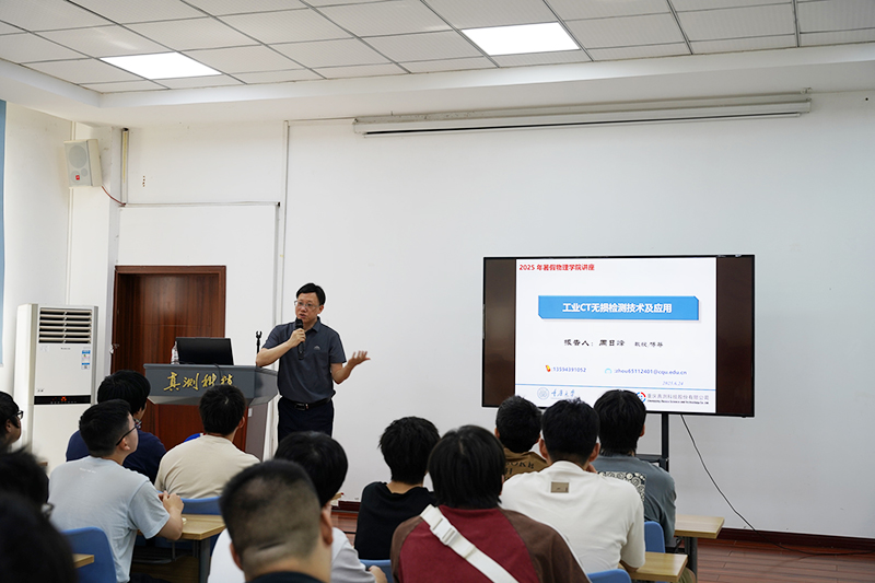 重慶大學ICT研究中心周日峰教授為師生們帶來了一場題為《工業CT無損檢測技術及應用》的講座。他從檢測技術的原理講起,結合高鐵核心部件的探傷、發動機內部缺識別、鋰電池內部缺陷檢測等實際案例,周教授的講解引發了師生們的濃厚興趣,他鼓勵同學們夯實數學、物理基礎,培養跨學科思維。周教授最后說,“科技創新需要敢想敢干的年輕人,希望未來能在工業CT領域、ICT研究中心和真測科技見到你們的身影!”。